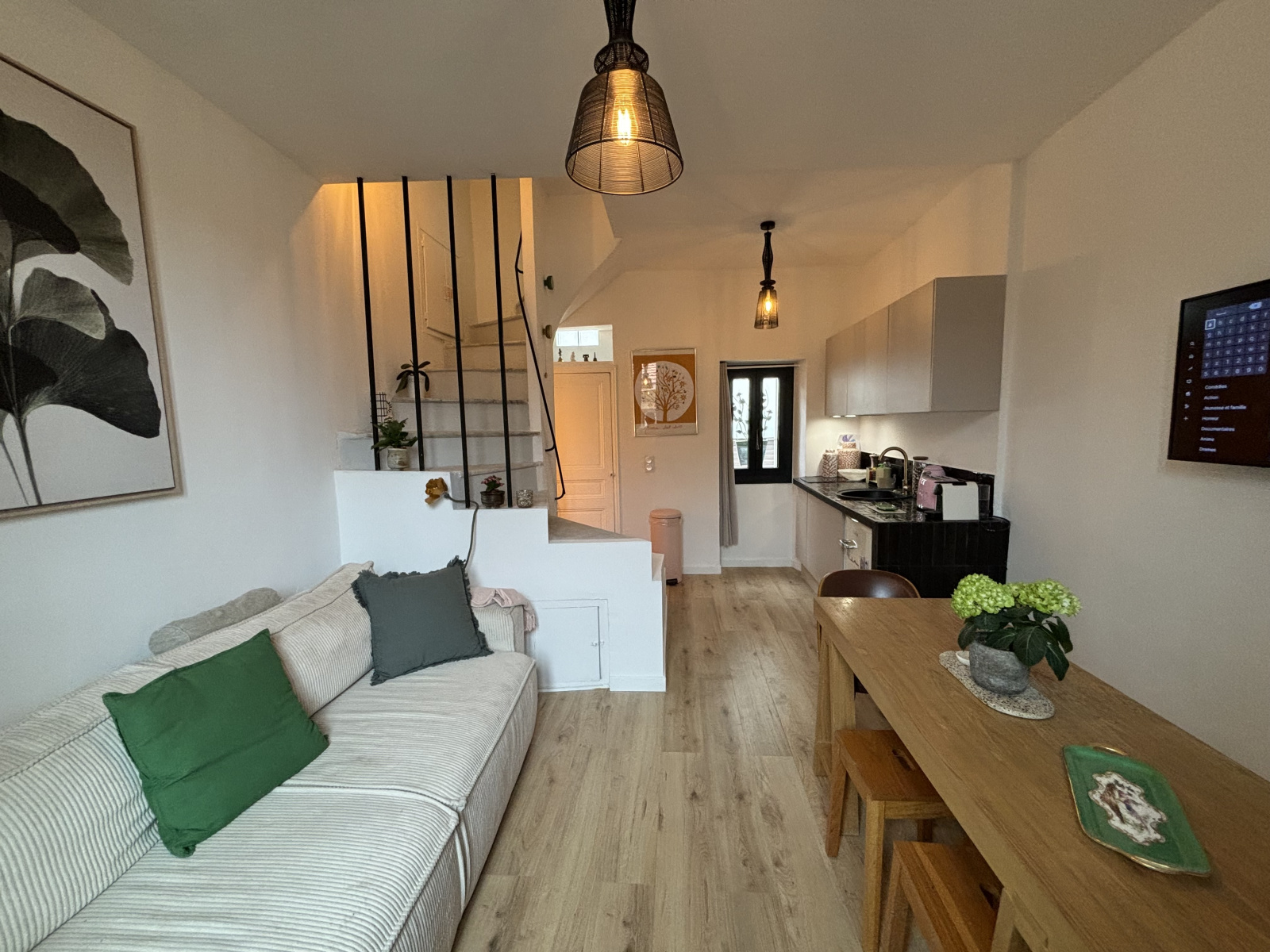 Entièrement rénovée avec soin dans le respect de son style authentique, cette maison offre un cadre de vie paisible et confortable. Elle se compose de deux chambres, dont une avec balcon offrant une belle vue sur le village et la mer, d'une salle d’eau avec WC, d’une buanderie ( deuxieme sale d'eau et wc possible) ainsi que d’une cuisine ouverte sur un salon traversant lumineux ( grande hauteur sous plafond)